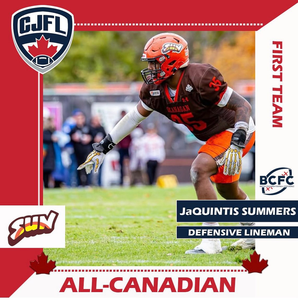 JaQuintis Summers – Okanagan Sun – recorded 12 sacks, 17 tackles, 9 assists, forced a recovered a fumble