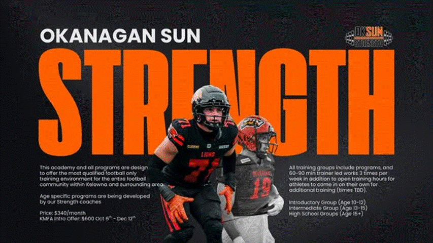 Leading the charge is Shane Beatty, Okanagan Sun Defensive Coordinator and Strength Coach, whose experience from Iowa State University, Westshore Rebels, and the back to back BCFC Championship-winning Sun, brings a new level of professionalism and precision to players in the Okanagan. His athlete-first approach — combining mental toughness, strength, and explosive performance — has been a major factor in the Sun’s on-field success.