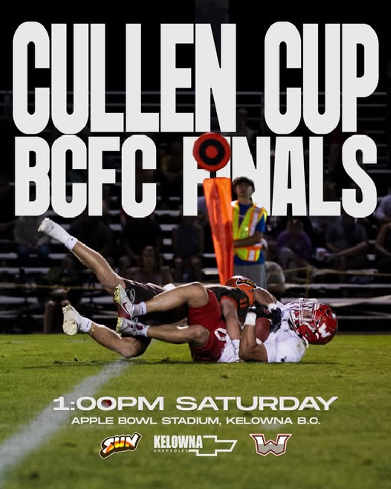 That’s exactly what fans will get this Saturday, October 18th, at the Apple Bowl, when the number one ranked, undefeated Okanagan Sun (10–0) host the number two ranked Westshore Rebels (7–3) in the BCFC Cullen Cup Championship.